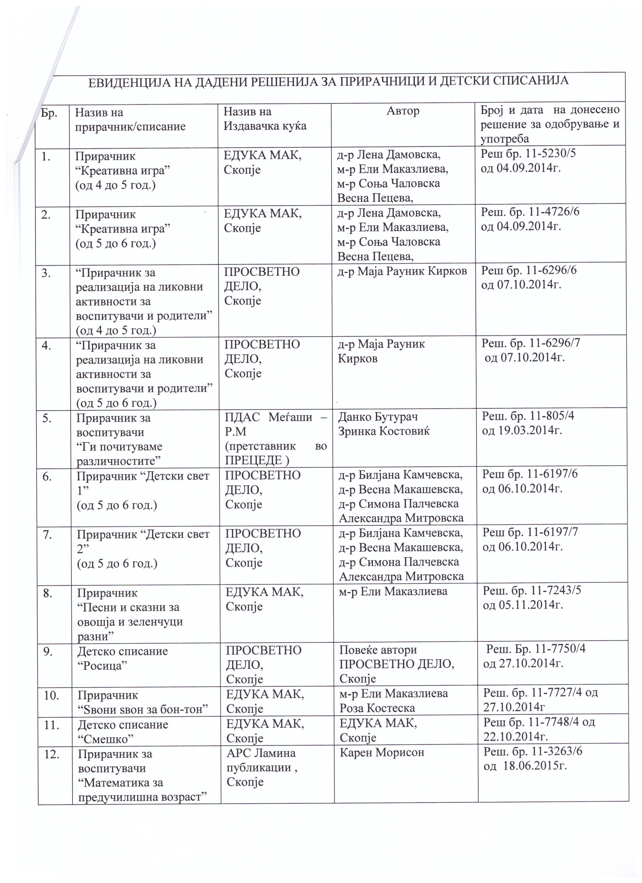 ПРИРАЧНИЦИ И ДЕТСКИ СПИСАНИЈА ЗА ПРЕДУЧИЛИШНА ВОЗРАСТ